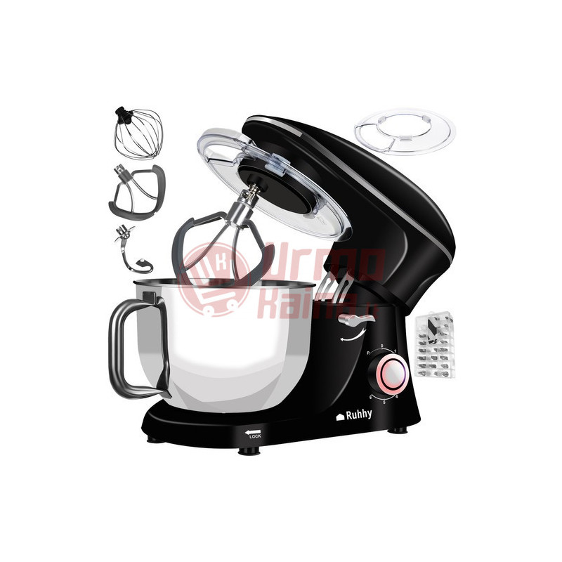 - DIDELIS DUBENIS 6,2l - mašinoje yra paliktas 6,2 litro dubuo aprupinta tvirta rankena kuri palengvins darbą dirbant ir pašalinant iš jo turini. Jis taip pat pagamintas iš nerudijančio plieno del to jis turi apsaugą nuo purslu leidžia išlaikyti švarą net maišant dideliu greičiu .